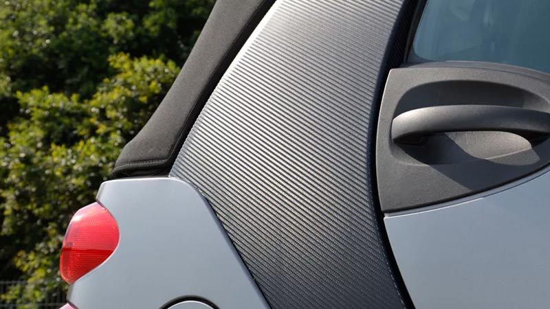 - Карбон — имитация углеволокна. Используется как для частичной оклейки (капот, зеркала, спойлеры), так и для полного покрытия.