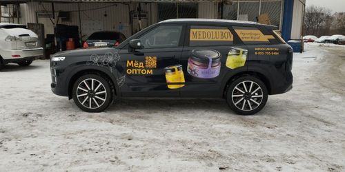 Кузов автомобиля полностью покрыт брендированной плёнкой. Максимальный визуальный эффект и охват аудитории. Дополнительно защищает лакокрасочное покрытие от мелких царапин и сколов на весь срок службы плёнки.