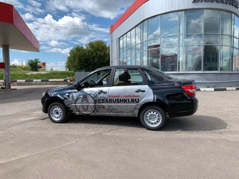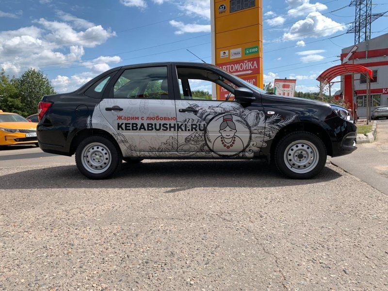 Красиво оклеенная Granta показывает, что вы — серьёзная компания, которая инвестирует в её имидж. Клиенты доверяют больше. Конкуренты видят, что вы конкурентоспособны. Сотрудники (водители) гордятся тем, что ездят на красиво оформленной машине, а не на серой машине как все.
