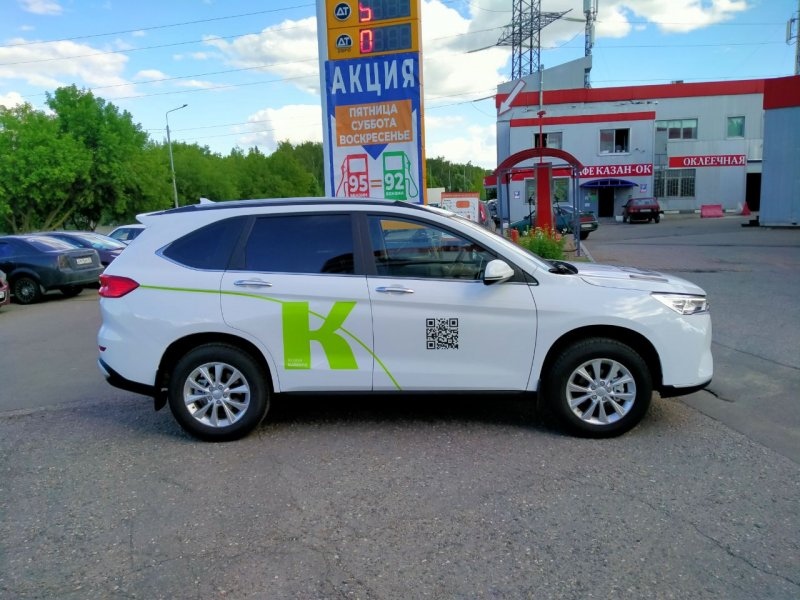 Haval Jolion: Самая популярная модель в корпоративных парках. Главная сложность — широкие неокрашенные пластиковые молдинги на арках и порогах в базовых комплектациях. Виниловая пленка имеет плохую адгезию к шероховатому пластику. Дизайн-макет должен строиться с учетом этих «мертвых зон», чтобы логотип или контактные данные не обрывались на стыке металла и пластика.