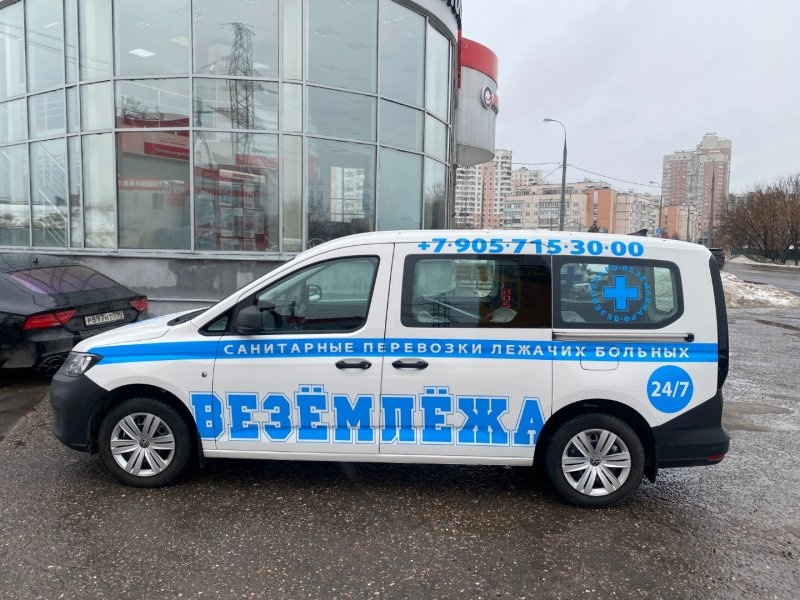 Структурный пластик: На моделях Crafter и базовых Caddy много неокрашенного пластика (молдинги, бампера). Обычный винил на нем не держится. Мы используем специальные праймеры (усилители адгезии) или вписываем макет строго в границы окрашенных деталей.