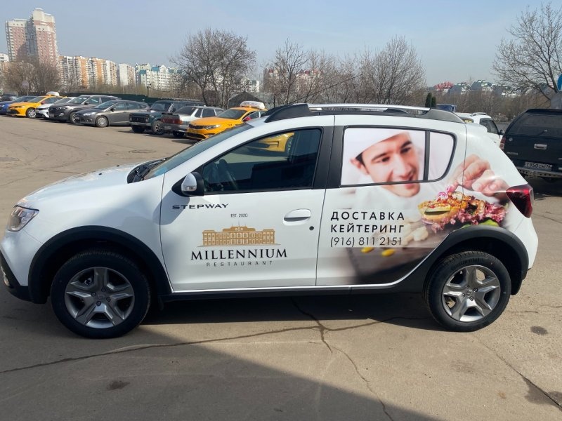 Для брендирования Renault Sandero мы используем только проверенные пленки, которые зарекомендовали себя в наших проектах для таких клиентов, как «Якитория», «Серджо Пицца» и Villagio.